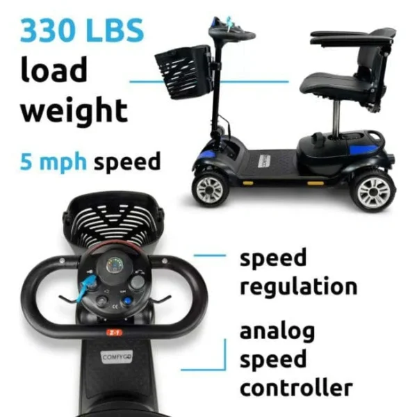 With the ComfyGo Z-4 Portable Mobility Scooter, which has a portable, foldable, and light design that you can use securely on cruise ships and airplanes, you can experience the future now and become more active. It has a sturdy frame that can support most people of moderate weight. It is ideal for both indoor and outdoor use and is portable for travel.