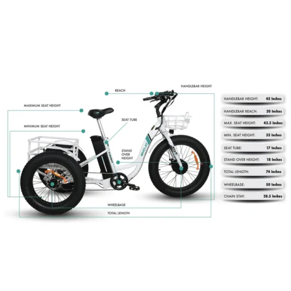 Emojo Caddy White Tricycle Commuter 500W Electric Bike – Specifications |