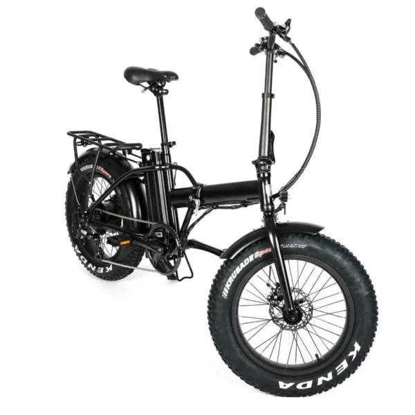 The Eunorau E-FAT-MN Folding Fat Tire Electric Bike is a premium bicycle made with high-quality products yet priced affordably. This full-featured fat tire electric folding bike comes with premium Krusade 20 x 4.0 Sports Fat Tires with K-Shield Protection, and an easy step-through frame that is perfect for trips around town, moderate trail riding, and even on snow and sand.