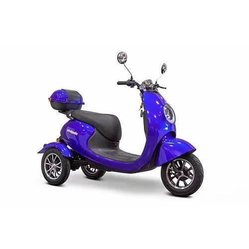 The EWheels EW-Bugeye scooter is made for users that prefer to get around outdoors and need to perform desired activities. It has a robust three-wheel design fit for indoor and outdoor use. The three wheels are more maneuverable and compact. The EWheels EW-Bugeye comes with a powerful 500-watt brushless motor, giving it the power to get up inclines or cross over grass. The scooter has a top speed of up to 15 miles per hour (24.14 km/h), so you can use it on the road. The deluxe seat is designed to be similar to a city scooter that is comfortable to sit on while riding at high speeds. The scooter comes with an independent heavy-duty shock suspension for added stability. Steer and control the scooter easily with the beautifully stylish motorcycle-type tiller. The EWheels EW-Bugeye is available in gorgeous blue and red colors.
