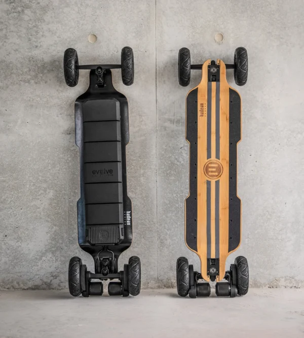 | MOTOR CONTROLLER / ESC: | Evolve Custom 50V Dual-Motor Driver, FOC motor commutation, Bluetooth connection & adjustable acceleration curves |