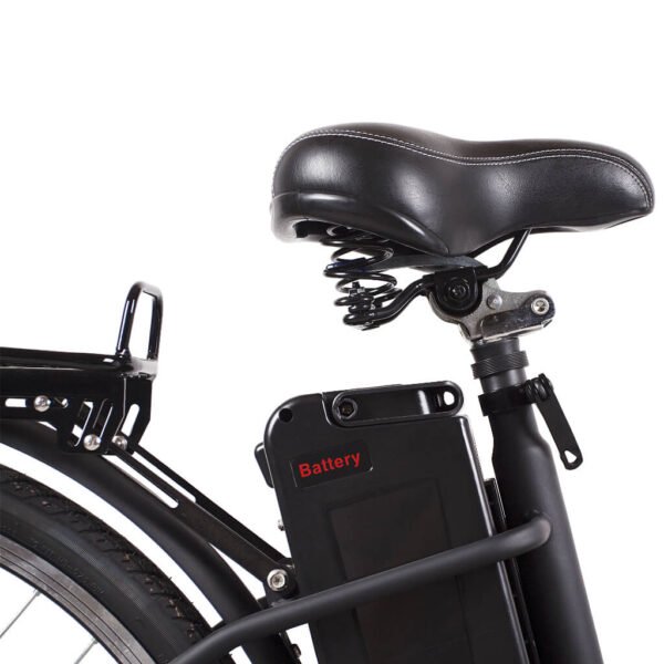 - Comfortable Riding: Comes with a comfortable big saddle with a fully adjustable saddle height to suit the rider’s height. Also has a user-friendly, step-through frame that lets you put your foot down at stoplights.