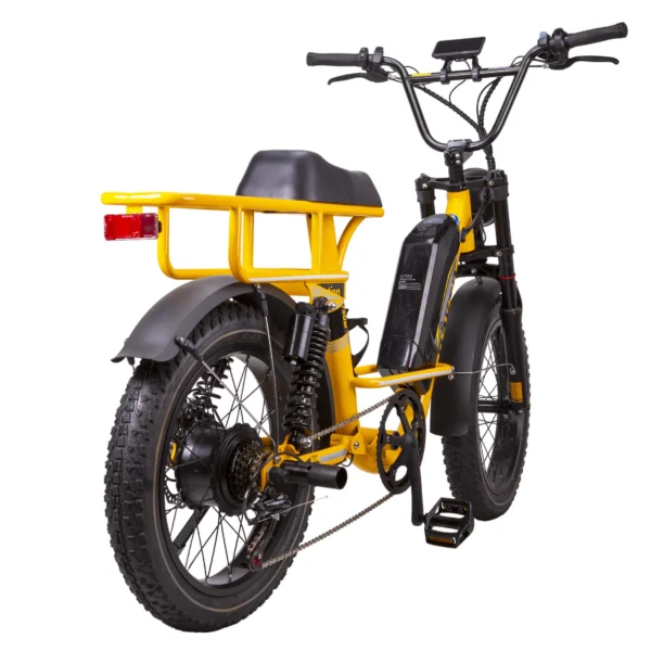 Check out the Nakto F4 Electric Cargo Bike, your ultimate companion for pro-level riding adventures. Whether you’re navigating through city streets or tackling rugged trails, this cargo eBike offers an unparalleled experience of power, comfort, and versatility. Choose between the F4 Yellow with its impressive 1000W peak motor or opt for the F4 Green with a 750W peak motor, both paired with a robust 48V battery for an extended 60-mile range with pedal assist.