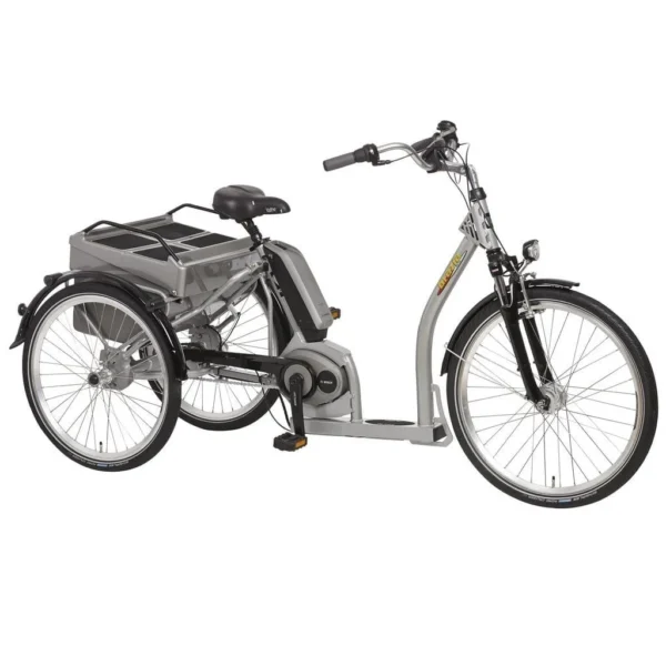 Take off in high gears or long journeys: the torque-controlled motor with its powerful battery and needs a maximum of 4 hours for a full recharge cycle. Design and construction are suitable for riders up to 265 lbs. The extremely low step-through allows one to step up onto the tricycle with ease. All PFIFF bicycles and tricycles are designed and made in Germany.