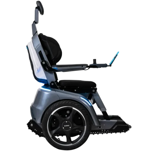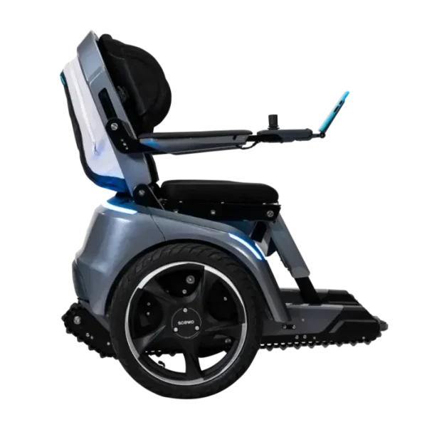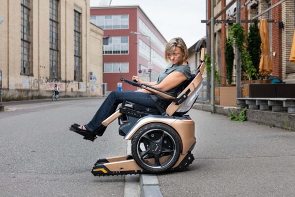 Scewo BRO drives on two wheels – all on its own without the use of your upper-body stability. Thanks to the two large wheels you can navigate safely and nimbly on various surfaces. BRO also overcomes obstacles of up to 5 cm with ease. Even a walk in the woods becomes a pleasure.