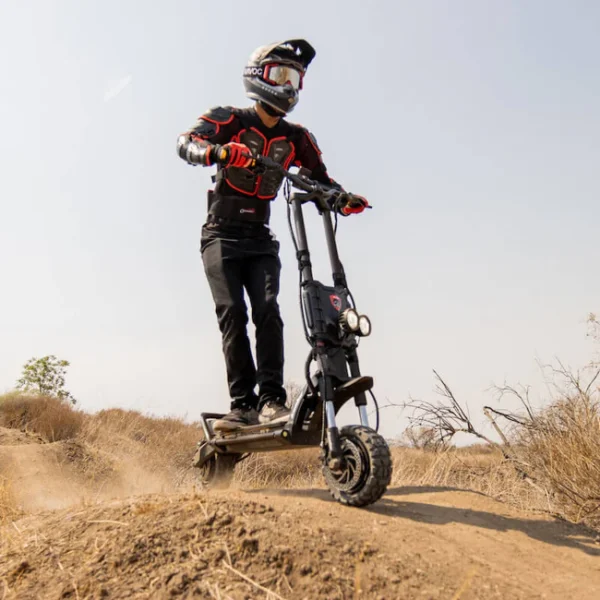 Designed for the ultimate off-road experience, the Wolf GT Pro comes with the same elongated front stem and wider handlebars as the more powerful brother Wolf King GT. It features motorcycle grade hydraulic front shock absorbers and rear springs for a smooth ride on any terrain. The two 1200W motors in combination with two improved sine wave 40A controllers for smoother control, deliver powerful hill climbing abilities.